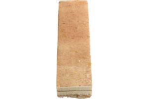 Pieza de pastelería multicapa, con forma rectangular alargada y contenido de arroz con leche y azúcar.