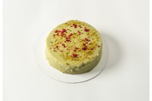 INGREDIENTES: Agua; Bizcocho (HUEVO líquido pasteurizado, azúcar, harina de TRIGO, almidón de TRIGO, emulgentes (E475, E471), LECHE desnatada en polvo, dextrosa, almidón de arroz, impulsor (E450i, E500ii), estabilizante (E412), conservante (E200)); Crema blanca (Azúcar, aceites vegetales (palma, colza), LECHE desnatada en polvo, grasa vegetal (palma), grasas vegetales totalmente hidrogenadas(palmiste, palma), emulgente (lecitina de girasol) y aromas); NATA, mazada, grasa vegetal totalmente hidrogenada (palmiste),azúcar, lactosa, emulgente (E-435, lecitina de soja, E-471), estabilizantes (E-415, E-407), sal y aroma; Preparado azucarado a base de aceites y grasas vegetales para montar (agua, grasas y aceites totalmente hidrogenados (palmiste, girasol), azúcar, estabilizantes (E420, E463), proteínas de LECHE, emulsionantes (E472e, E322 (lecitina de SOJA), E472b), sal, aromas, colorante (E160a)); Preparado para crema pastelera (Azúcar, almidón modificado, suero de LECHE en polvo, dextrosa, aceites vegetales (coco), estabilizante (fosfato disódico (E339ii), goma xantana (E415), difosfato tetrasódico (E450iii), hidroxipropilmetilcelulosa (E464), sulfato cálcico (E516)), gelificante (alginato sódico (E401)), clara de HUEVO en polvo, conservador (sorbato potásico (E202)), proteína de la LECHE,sal, colorante (betacaroteno (E160a(i)), carbonato de calcio (E170)) y aroma; Crema de pistacho(azúcar, aceites y grasas vegetales (palma, girasol), LECHE desnatada en polvo, PISTACHOS 13%, NATA en polvo. Agente emulsionante: lecitina de SOJA. Colores: complejos cobrizos de clorofilas, curcumina. Sal. Sabores. Agente antioxidante: extracto de romero); Azúcar; Crema pasteurizada sabor frambuesa (agua, confitura de fruta (fresa (38%), azúcar, jarabe de glucosa y fructosa, agua, gelificante (E-440), acidulante (E-330), espesante (E-410), conservante (E-202)), azúcar, jarabe de glucosa y fructosa, almidón modificado, (E-1442), glicerina, puré de limón (azúcar, agua, limón (20%), jarabe de glucosa y fructosa, almidón modificado (E-1442), zumo de limón (3%), gelificante (E-440), conservante (E-202), acidulante (E-331)), colorante (E-163), espesantes (E-460, E-466), acidulante (E-334), aroma, sal, conservante (E-202));crema para pastelería sabor a frambuesa (frambuesas (45%), azúcar, agua, estabilizantees (pectinas,goma,garrofín), almidón modificado,correctores de acidez (E-330, E450, E341),producto alimenticio colorante (concentrado de zanahoria, grosella negra), conservador: E202, colorante: E150d, aromas. ;Zumo de limón (100%); PISTACHOS mondados crudos; Ron blanco 37,5% Vol. Alcohol; 100% Frambuesa. 70% Frambuesa entera.