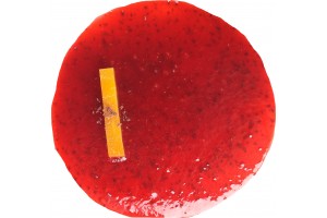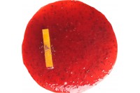Pieza de pastelería en dos alturas elaborada a partir de bizcocho con un relleno cremoso sabor a fresa y acabado de frambuesa.